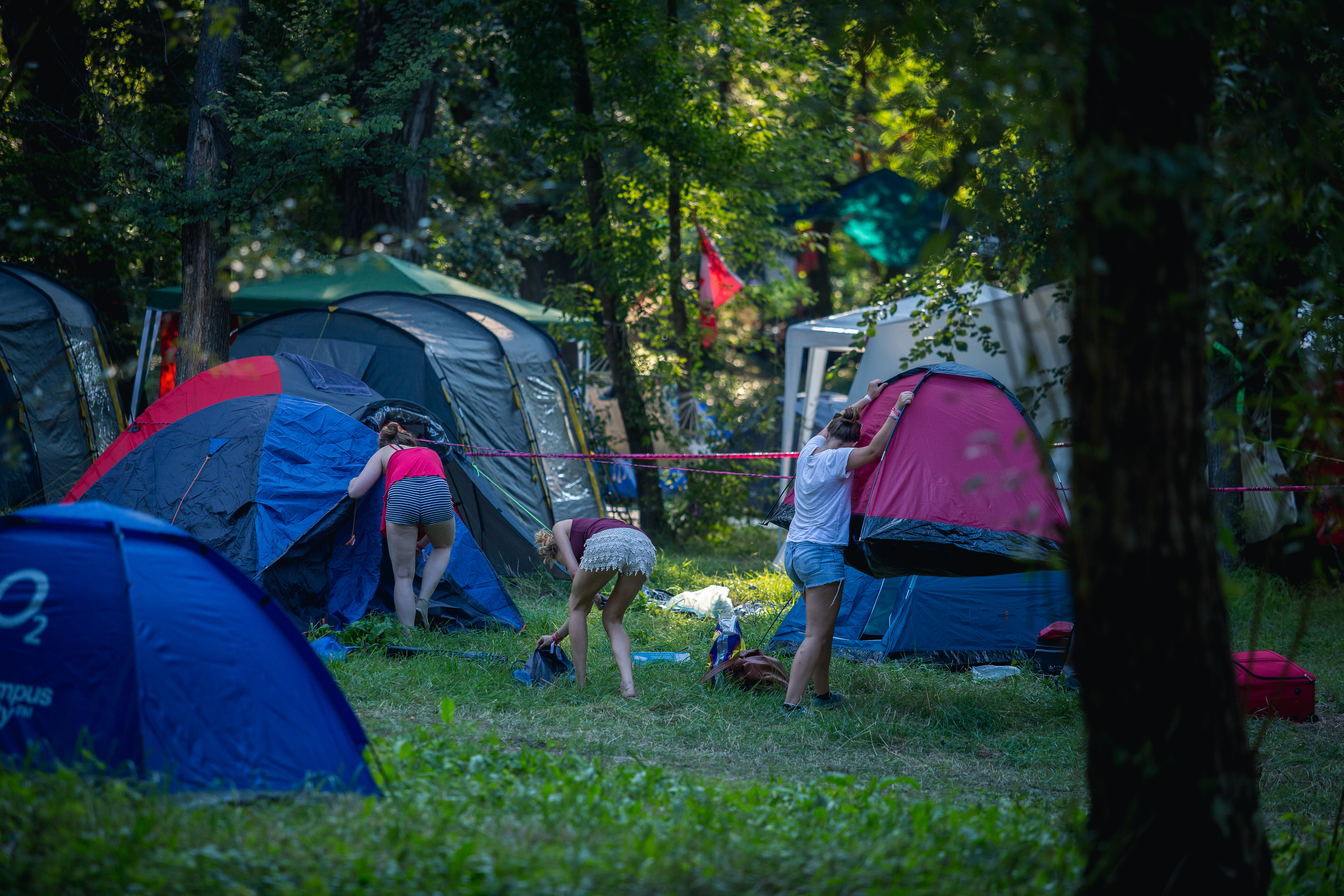 Beyond this visually displeasing entrance and arrival, I finally begin to see the beauty and natural aura of the festival. Much like Glastonbury, you can camp near-enough anywhere you want, and thanks to the retained nature of the island, this makes for beautiful scenic shots that finally illustrates the whole ‘Freedom’ aesthetic the organisers are gunning for. Tents pitched under lush green trees draped in fairy lights make for a great setting that really encapsulates the feel of the island, people pin huge hammocks between trees, they bring huge colourful tarpaulins for cover, they draw up huge signs or flags, anything to make their living space more appealing to other festival-goers. Remember this a week-long festival, your living space has to be fit for this, and more than just a small patch with a tent in it.