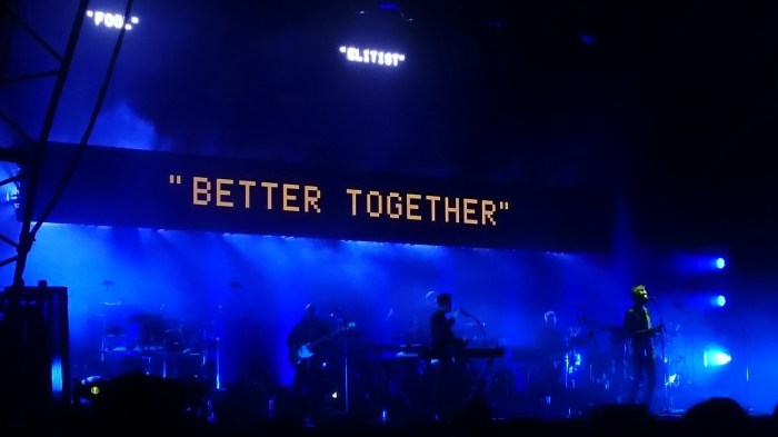 For something considered a small event, the production values of Massive Attack’s set are really some to revere. Politically potent and relevantly shocking, digitized imagery continuously scanned behind the shadowy figures of the band, featuring newspaper headlines, internet searches, and infamous quotations.